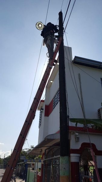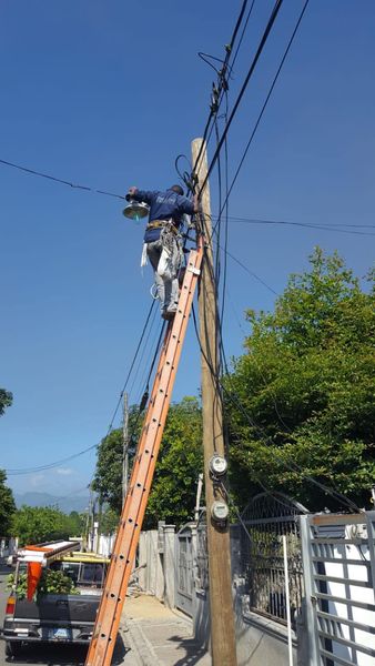 Bonao, Monseñor Nouel.- La tarde este martes por disposición del Licdo Osiris Martínez Alcalde del Distrito Juma Bejucal, una brigada eléctrica estuvo reparando lámparas en la C/Neyda de Marchena en las inmediaciones de Comajon.