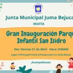 21 abril, 2023La Junta Municipal Juma Bejucal invita a la inauguración del Parque Infantil San Isidro, este Viernes 21 a las 9:00AM....