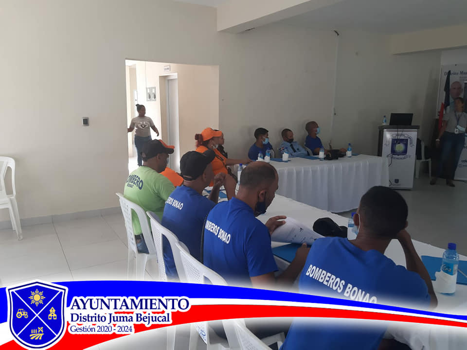 En el día de hoy el Lic. Osiris Martínez Director Municipal se dio cita en conjunto con la empresa EDENORTE y oficiales de los BOMBEROS DE BONAO, en un curso taller a los oficiales de la defensa civil y miembros de los Bomberos del distrito Juma Bejucal, en el cual se impartió conocimiento de como reaccionar y actuar en momentos determinados de las emergencias locales.