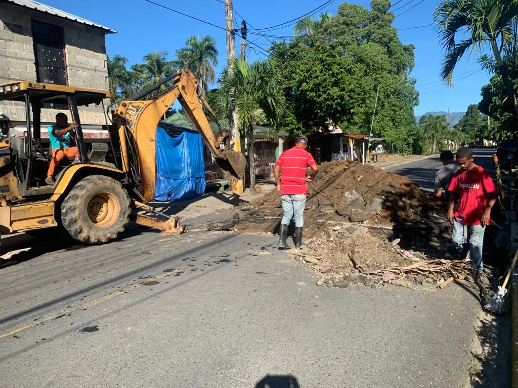 Bonao, Monseñor Nouel.- La autopista Duarte específicamente el tramo frontal del palacio municipal de Juma Bejucal, fue intervenida la mañana de hoy como así lo dispusiera el Licdo. Osiris Martínez, debido al hundimiento de la alcantarilla que conecta esa intersección de extremo a extremo.