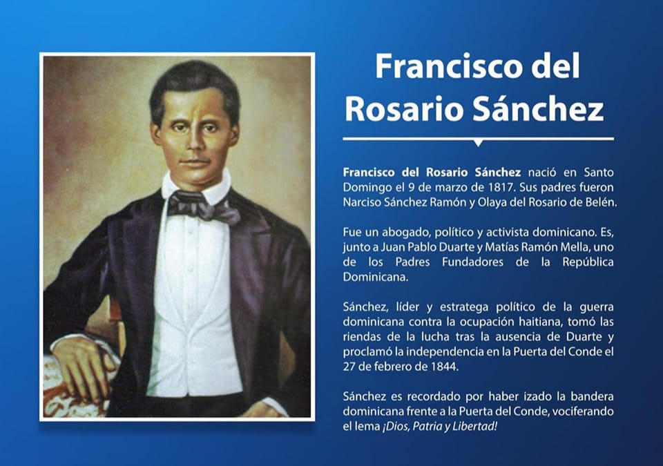 Hoy celebramos el 205 aniversario del natalicio del patricio Francisco del Rosario Sánchez, abogado, líder y estratega político, quien no titubeó para empuñar las armas y salir en defensa de la patria, protagonizando el inicio de la proclamación de la Independencia Nacional.