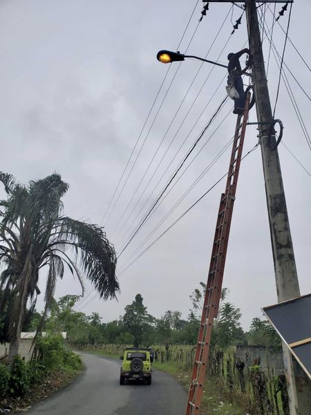 Bonao, Monseñor Nouel.- El equipo de instalación y mantenimiento eléctrico de la Junta Distrital Juma Bejucal, iluminó la tarde del viernes la intersección de la C/Ángel Peña, cerca de Don Pollo, por disposición del Lic. Osiris Martínez, Alcalde del Distrito.